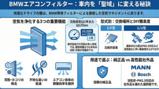 BMWの車内空間を快適に保つためには、エアコンフィルターの存在が非常に重要です。ホコリや花粉、排ガス、ペットやタバコの臭いなど、外気の影響は車内に蓄積しやすく、知らず知らずのうちに快適性や健康に影響を与えることがあります。ここではBMW車に...