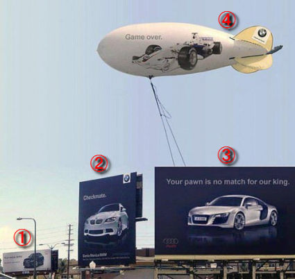 - BMWが、右隣に「チェックメイト(王手)」と応戦。