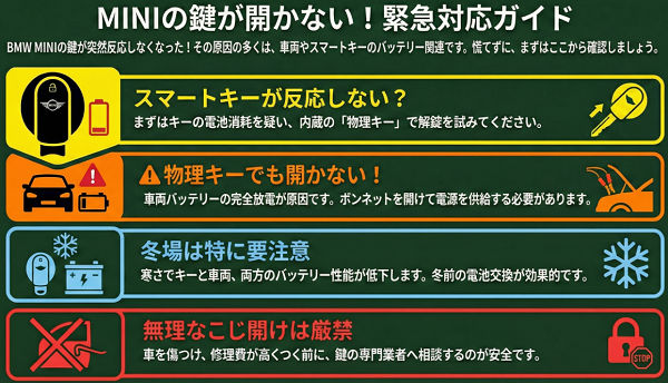 MINIの鍵が開かない原因と対処法|スマートキー不調・バッテリー上がり
